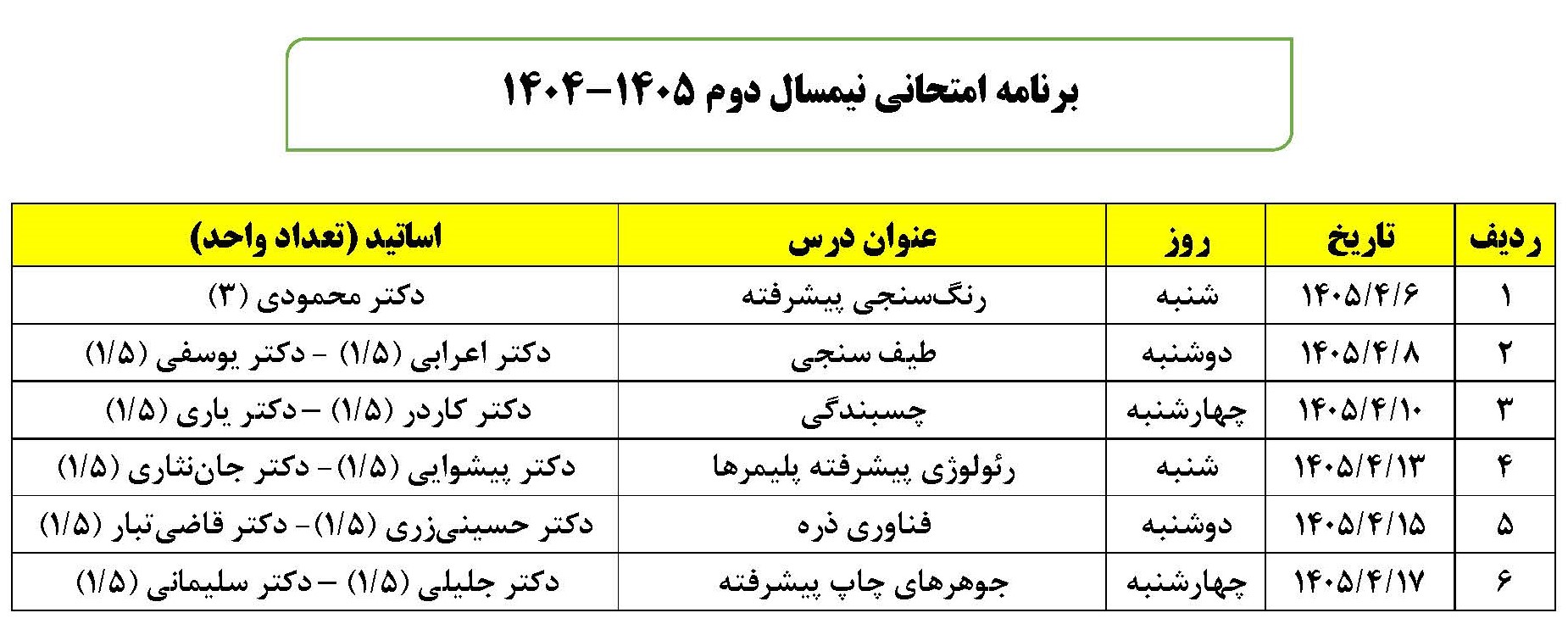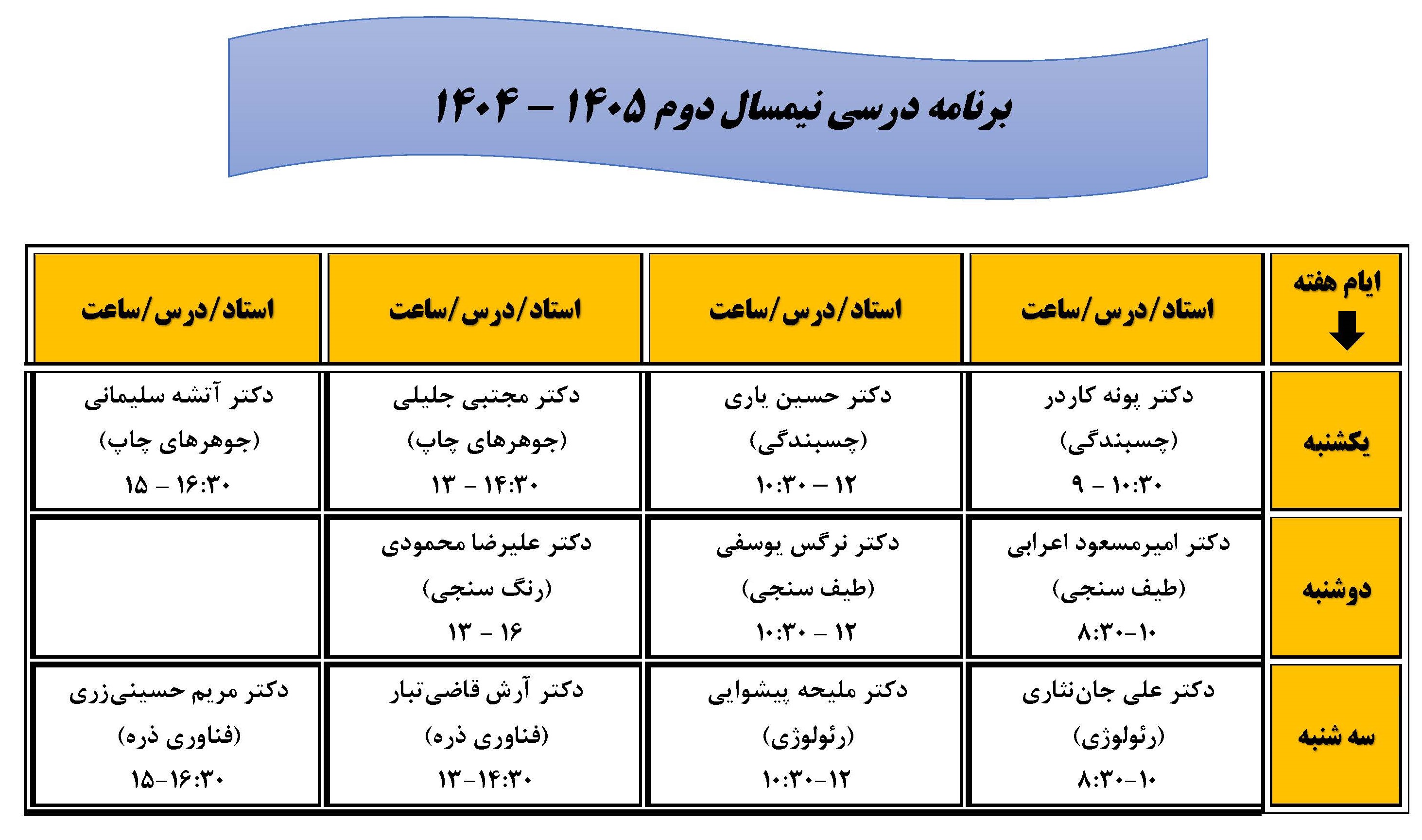 برنامه درسی نیمسال دوم ۱۴۰۵-۱۴۰۴ ۰۸ بهمن ۱۴۰۴ | ۱۲:۴۴ اطلاعیه ها ارسال به دیگران نام شما ایمیل شما ایمیل دریافتکننده ارسال انصراف تعداد بازدید:۱۰